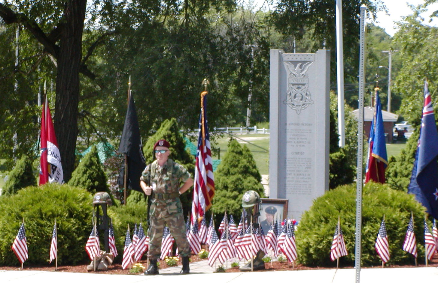 A member of the 173rd Airborne Infantry Association keeps vigil at the John Barnes Memorial on May 30, 2010.