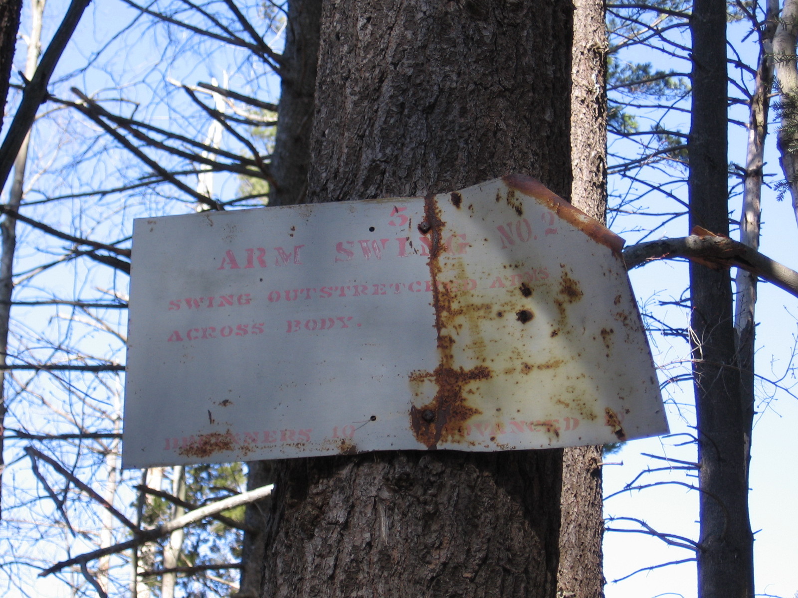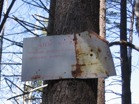 In 1977, fellow DHS senior John MacDonald set up an exercise course in the forest for his Eagle Scout project. Several of the signs can still be found nailed to trees; a little rusty, some with bullet holes, others bent to interesting angles.
