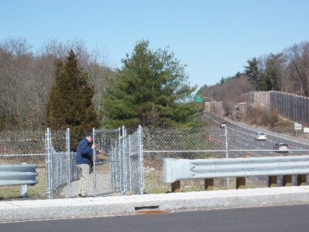 This gravel access road runs from the northbound lanes of 128 to the southbound lanes. It is gated, but the gates were open, so I suppose some foolhardy motorist could actually pull in here from the fast lane of 128.