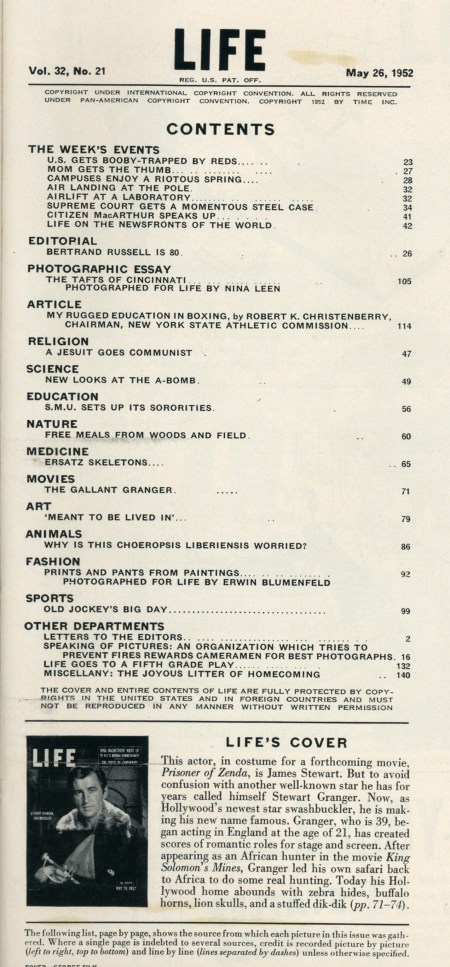 One of the stories listed in this table of contents from the May 26, 1952 edition of Life magazine is about a group of Dedham residents. The article and accompanying photographs made minor celebrities of the group for a while, and you can read all about in my next post…
