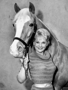 So now I’m starting to get frustrated. I can’t believe that there is not a single solitary horse to be found in the hometown of the woman who grew up to star on TV as the wife of a man who owned a talking horse! I’m talking (of course, of course) of Connie Hines (DHS 1948) who played Carol Post on the old Mr. Ed show back in the sixties.