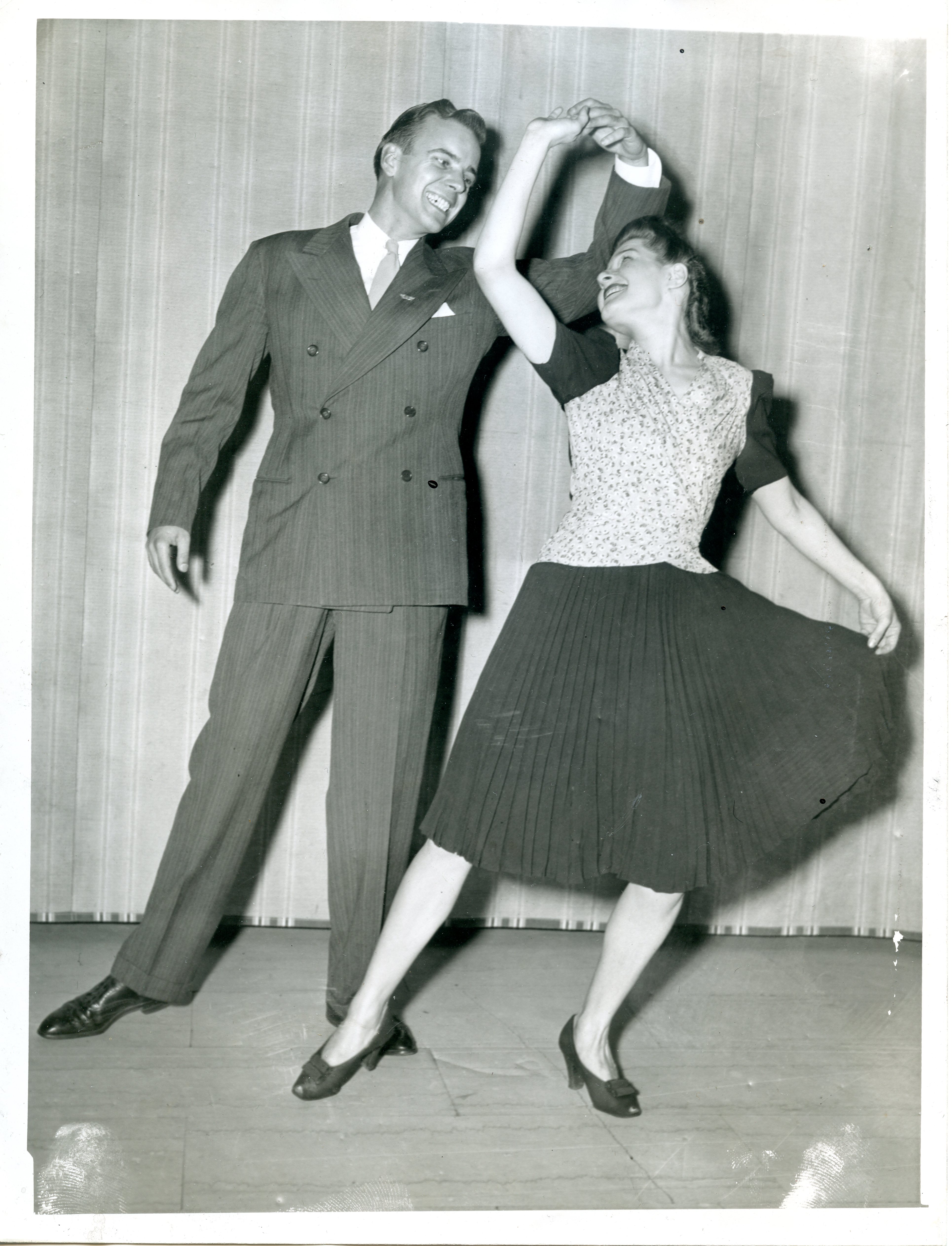 Arlington born Russell Curry was a well-known figure in the Boston dance scene beginning in 1938 when he joined his mother’s Curry School of Dance, an enterprise she had started in 1920. During World War II, Curry worked with the USO traveling to local army camps teaching dance steps to servicemen. In the 1950s, he began instructing young people across New England in social etiquette and dance. During his heyday, Curry taught over 15,000 students a year in 50 communities across New England.