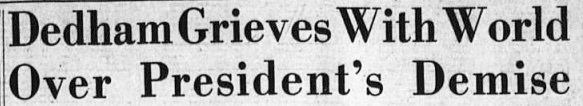 In the weeks following the assassination, town leaders began discussing the best way to memorialize the president. Originally selectmen considered erecting a standing memorial somewhere on town property, but that idea was abandoned in favor of something that would, according to the Transcript “embody some of the warmth of the late president for people, some of his love for athletics and his interest in literature.” In the end it was decided that a scholarship in the president’s name would be established at Dedham High. The scholarship was given every year at least through 1973, but does not appear on the list of scholarships awarded to the Class of 2021.