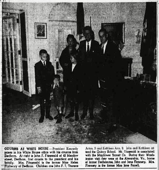 The president had a direct connection to Dedham through his cousin John Fitzgerald, who lived on Meadow Street with his wife Helen and their three children. Kennedy had also visited the town on several occasions during his senatorial campaigns.