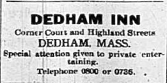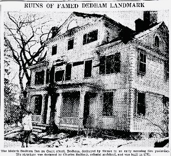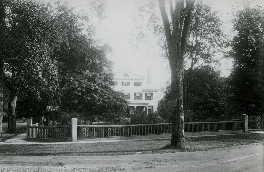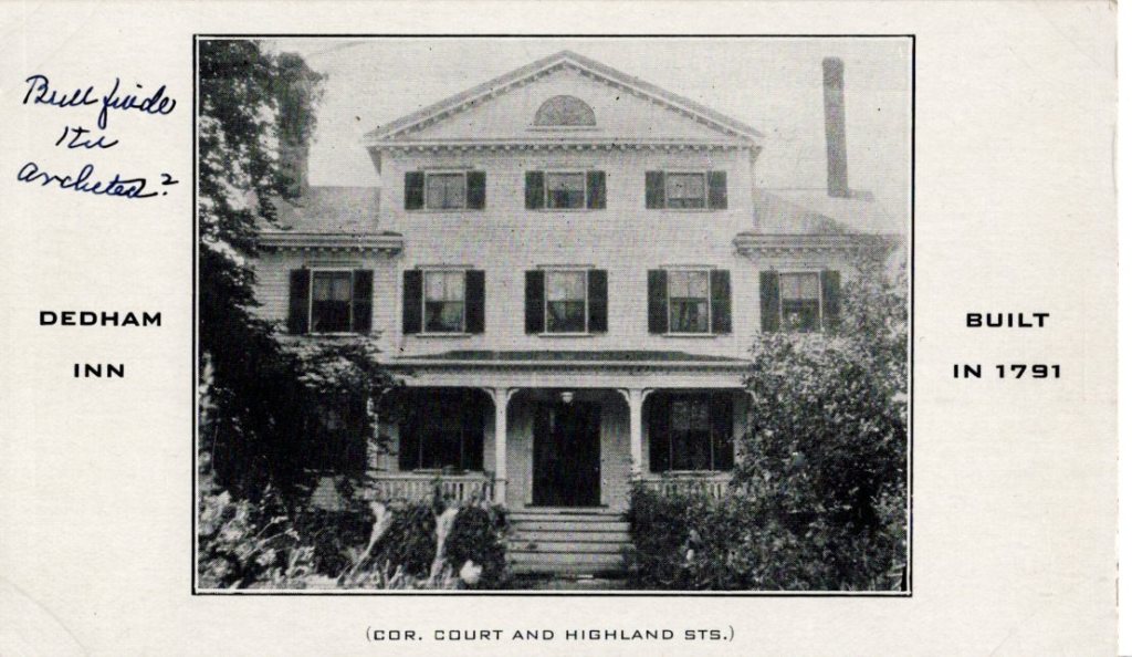 On the western side of Court Street near Highland Street stand three homes built in the early 1950s. The split-level/ranch design is typical of the time period, but the granite posts that stand on the lawns of these homes are from a much earlier period and indicate that something grand once stood here. Fortunately, the history of the previous structure is well documented and with some help from the staff at the Dedham Museum and Archive and a little sleuthing in the digital newspaper archives I am able to present the story of the Richards House, also known as the Dedham Inn.