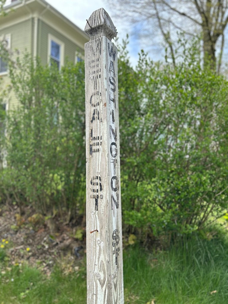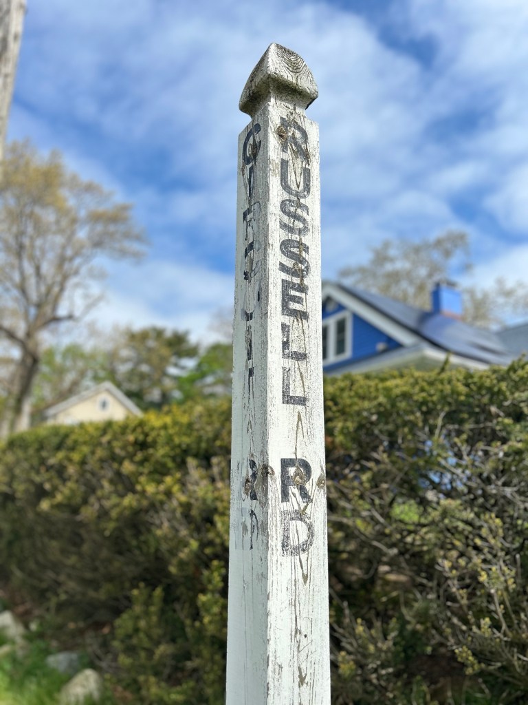 Turns out, rather than an example of some nefarious act of vandalism or theft, the missing signpost is an inspiring story of civic pride. For years, this particular signpost has been maintained (including hand painting the faded street names) by nearby resident Paul Reynolds, Fablevision CEO, Blue Bunny mainstay, and long time supporter of Dedham cultural and charitable organizations. After noticing the tipped over post last fall, Paul discovered the bottom had rotted out and could not be fixed.