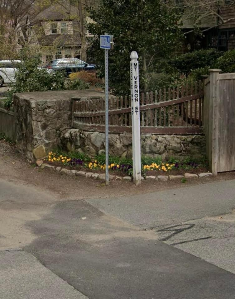 There has been quite a favorable response to my last post about the wooden street signposts that remain in Dedham. During my search for more of these, I discovered (with the help of Google maps street view) that one had disappeared from the corner of Mt. Vernon Street and Woodleigh Road some time after April, 2022.