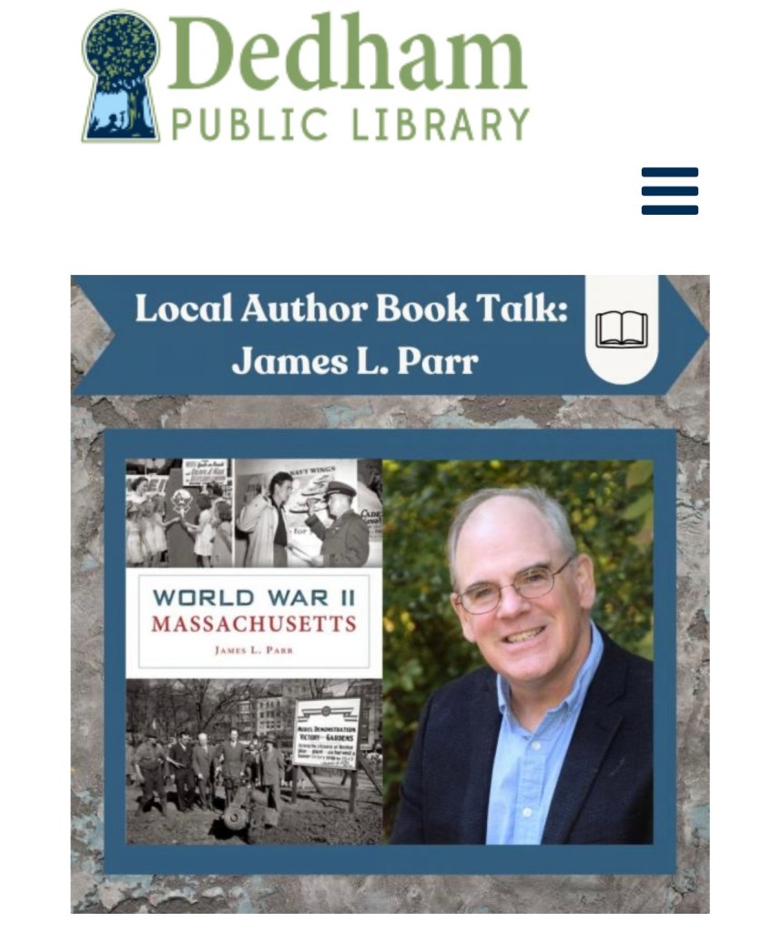 Sign up now for the 2:00 talk at the Dedham Public Library! Learn all about the home front during the war- signed copies of my book available.