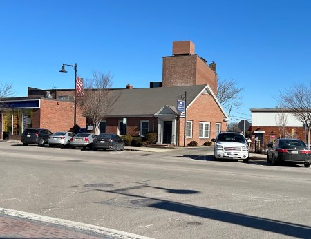Two views of Guild’s second shop on Washington Street, across from School StreetSame view as above in 2025