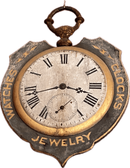 The wooden watch sign adorned Guild’s tiny shop for another ten years until declining health caused him to close his shop after forty-one years in business. At the time of his retirement in June,1901, Guild had been the longest serving tradesman in town.