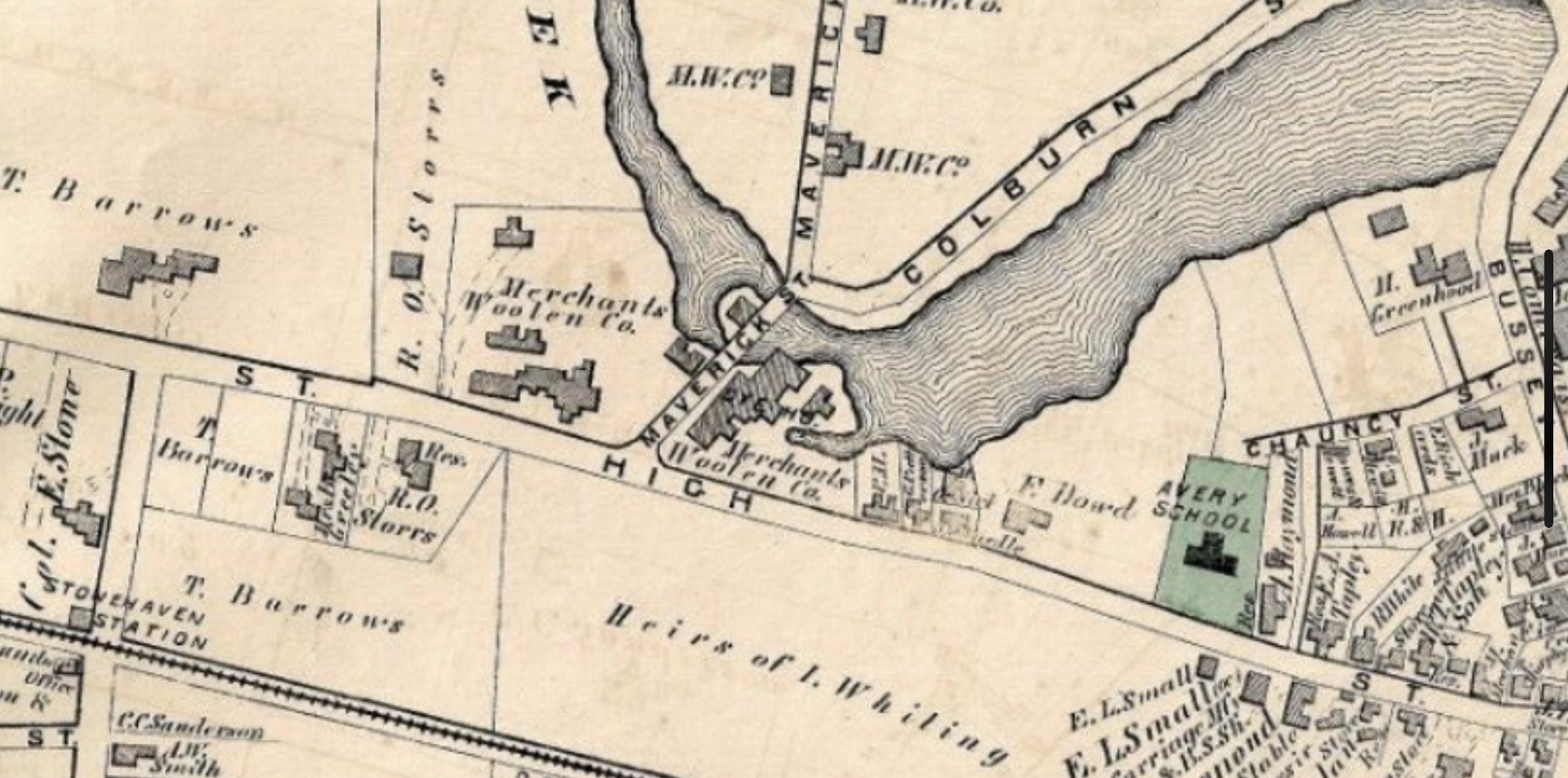 The Storrs property as seen on an 1876 map. Interestingly, Storrs lived across the street from Thomas Barrows, a previous owner of the Stone Milland the subject of the previous Stone Secrets post.