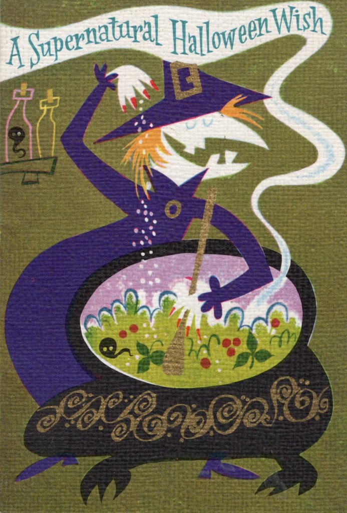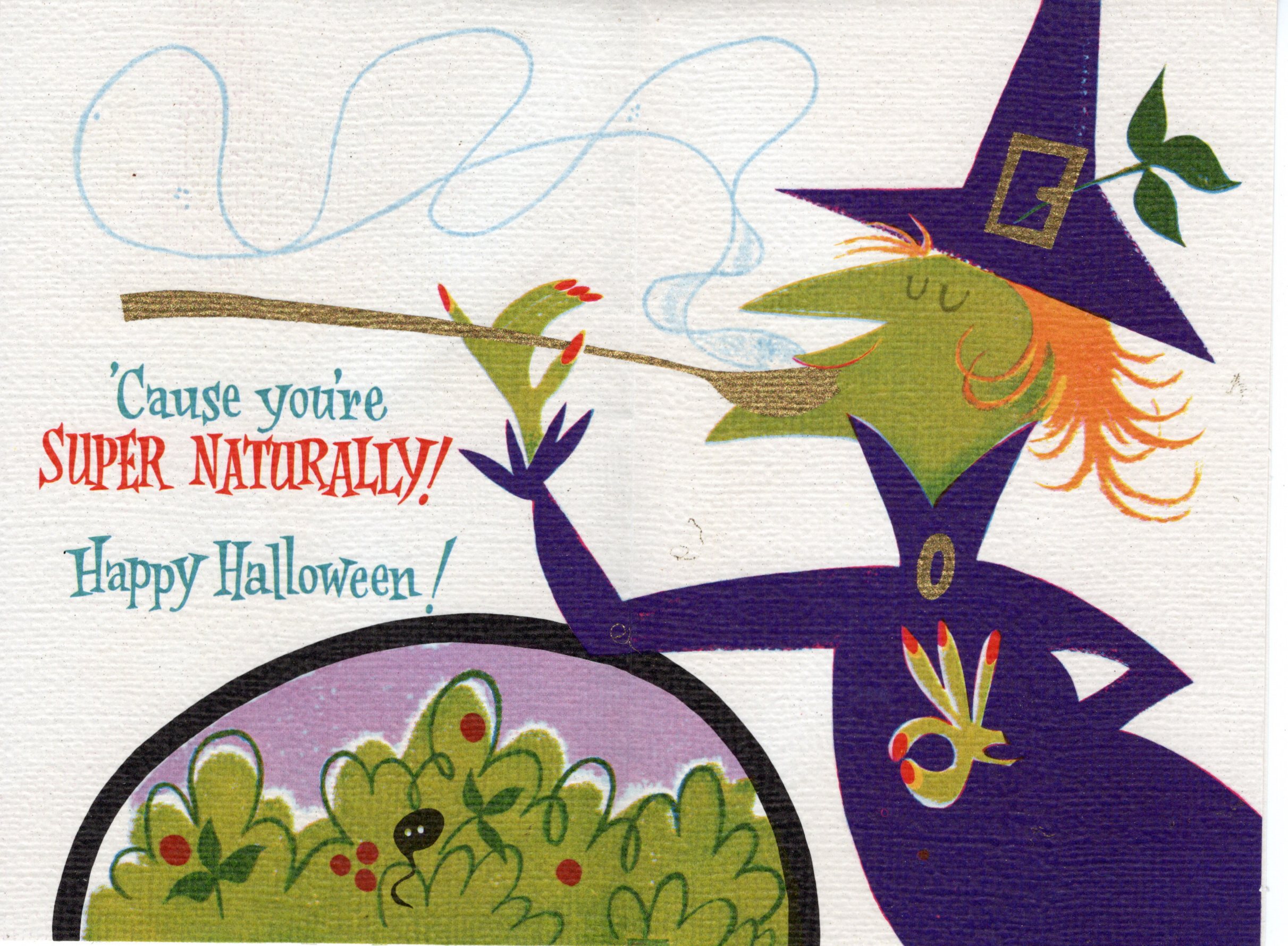 These cards were made by Rust Craft in the late 1950s. The colorful graphics and clever novelty additions (the cat in the above card made a meowing sound when you pressed it, the britches in the card below were on a spring) were characteristic of the company’s output during their early years in Dedham.